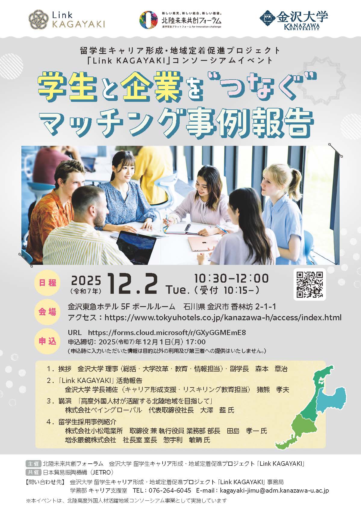 金沢大学 留学生キャリア形成・地域定着促進プロジェクト「Link KAGAYAKI」事務局です。