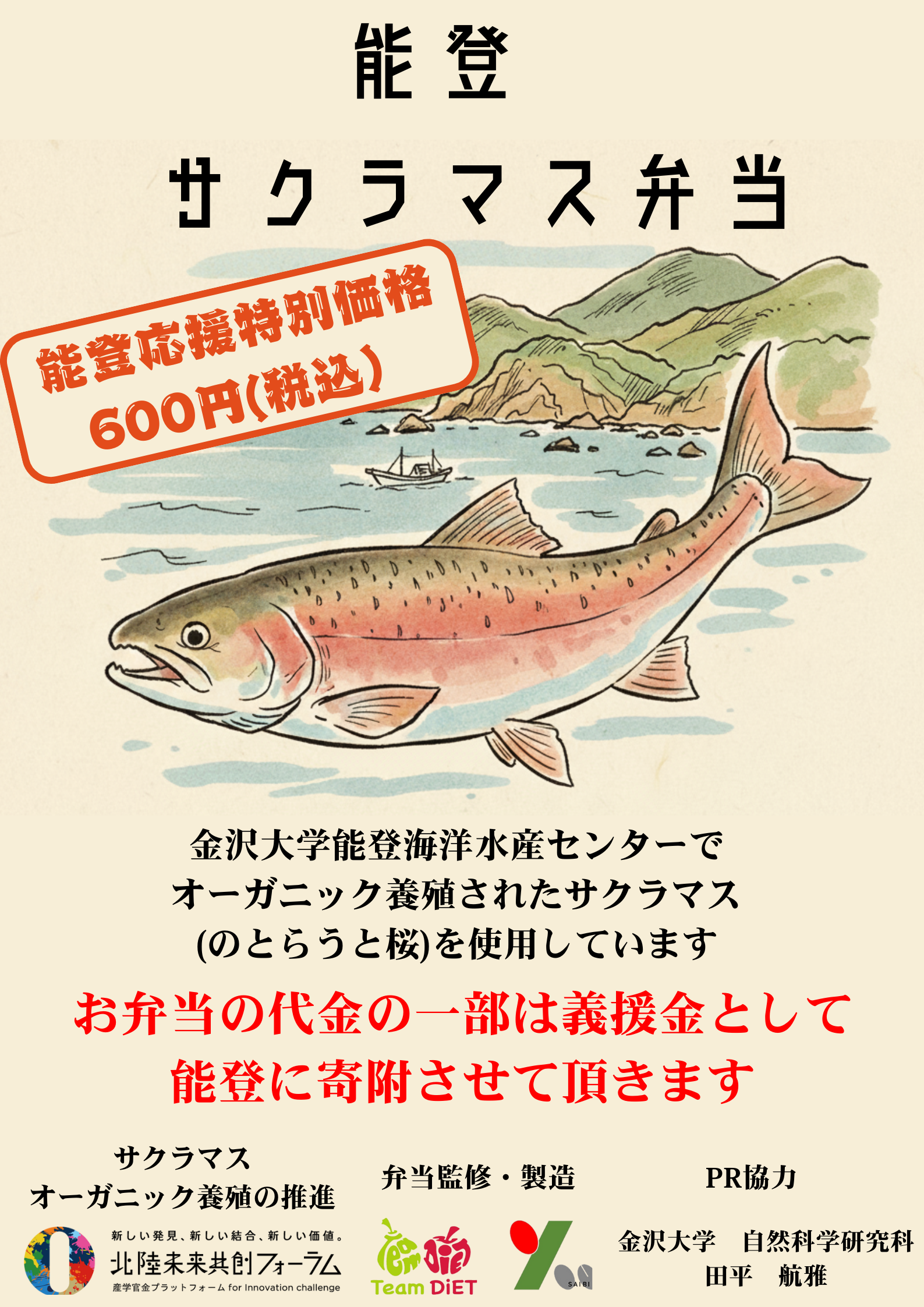 (次世代農林水産分科会・能登半島地震復興分科会)オーガニック養殖サクラマス「のとらうと桜」を使用した期間限定「能登サクラマス弁当」販売のお知らせ