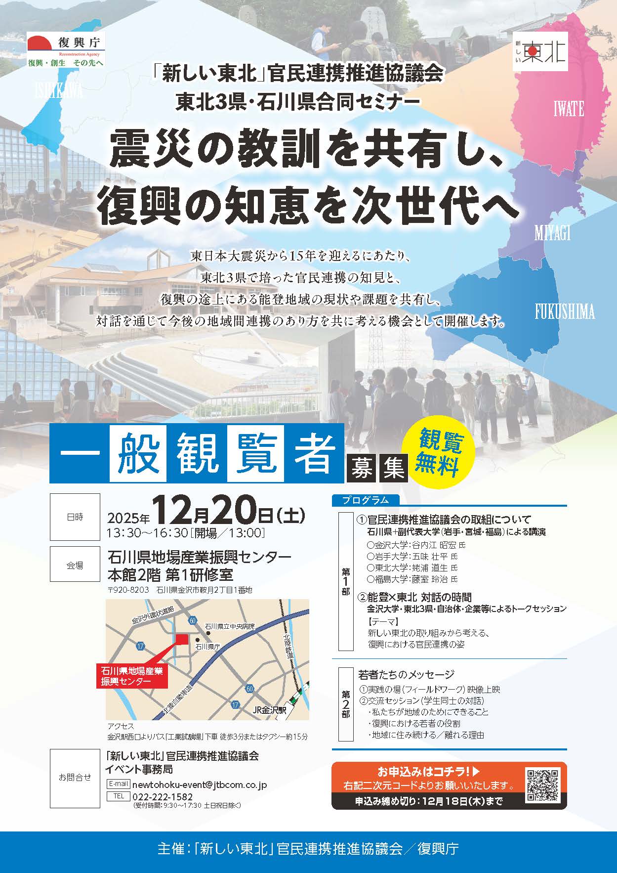 令和7年度 「新しい東北」東北3県・石川県合同セミナー 「つながりのその先へ ~震災の教訓を共有し、復興の知恵を次世代へ~」のご案内